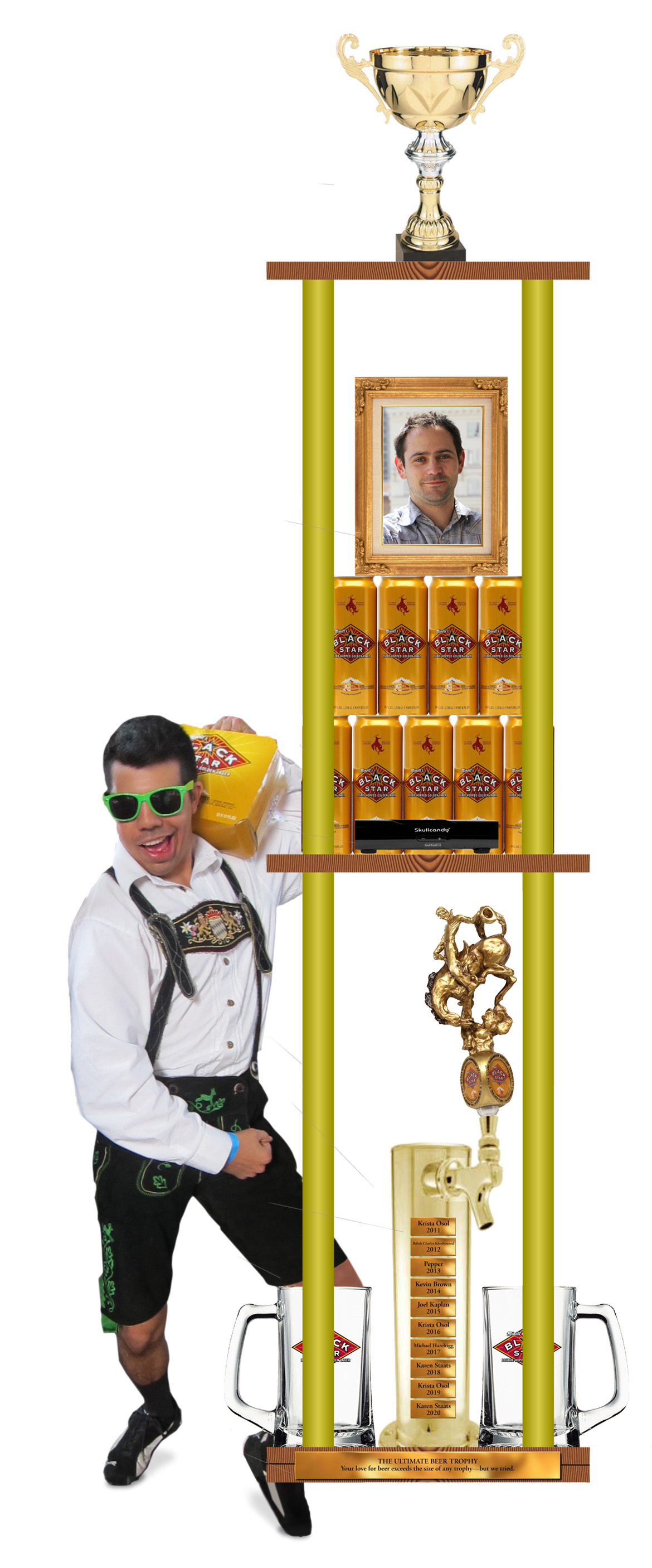 Black Star Beer's contest will close at 9pm on Friday, September 30th, saving Saturday to celebrate all of the brewers, breweries, and beers that have won competition medals. The biggest beer fan will be chosen at random. Black Star will contact the winner and award the ultimate beer fan trophy at their booth at approximately 9:30pm Friday evening. The winner must be present to receive this great honor. Due to its size and weight, the original trophy will reside in its original home The Great Northern Brewery in Whitefish, Montana, with the engraved name and picture of the winner prominently displayed on top. The winner will be given a replica of the trophy to take home.