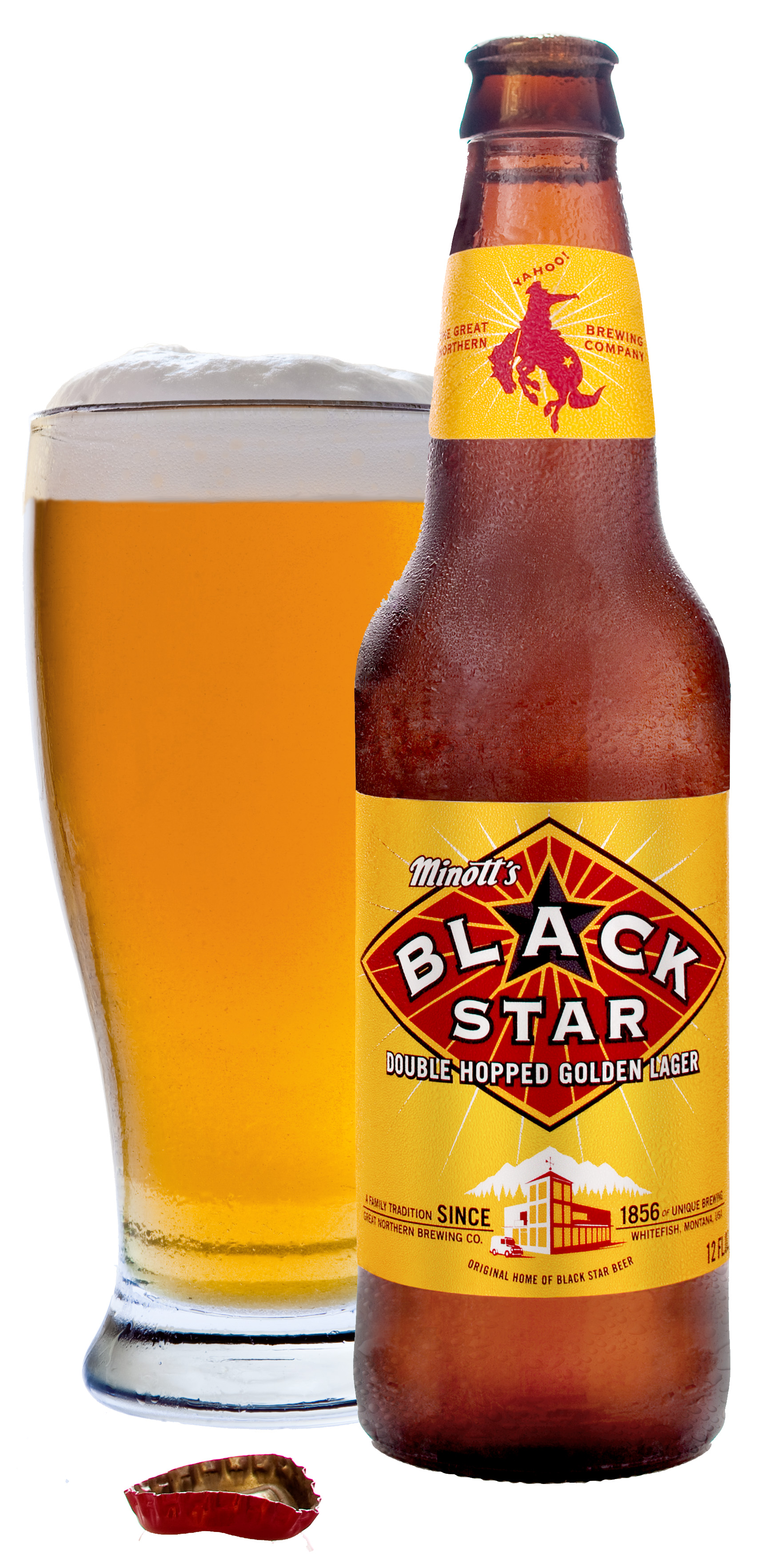 Black Star is a Double Hopped Golden Lager first brewed at the Great Northern Brewing Company in Whitefish, Montana in 1995. Black Star was created by Minott Wessinger, a fifth generation brewer and great-great grandson of West Coast brewing pioneer Henry Weinhard. Hopped first in the kettle and then again before finishing, Black Star is a refreshing beer with lots of taste. For more information, please visit http://www.blackstarbeer.com.